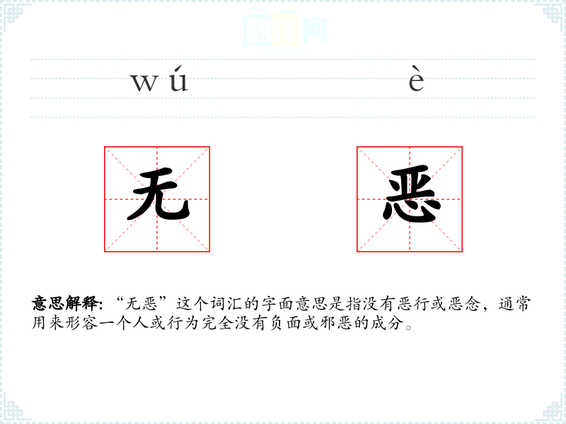 “无恶”这个词汇的字面意思是指没有恶行或恶念,通常用来形容一个人或行为完全没有负面或邪恶的成分。