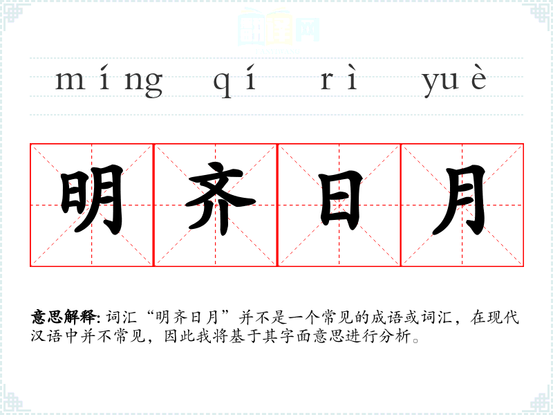 词汇“明齐日月”并不是一个常见的成语或词汇,在现代汉语中并不常见,因此我将基于其字面意思进行分析。