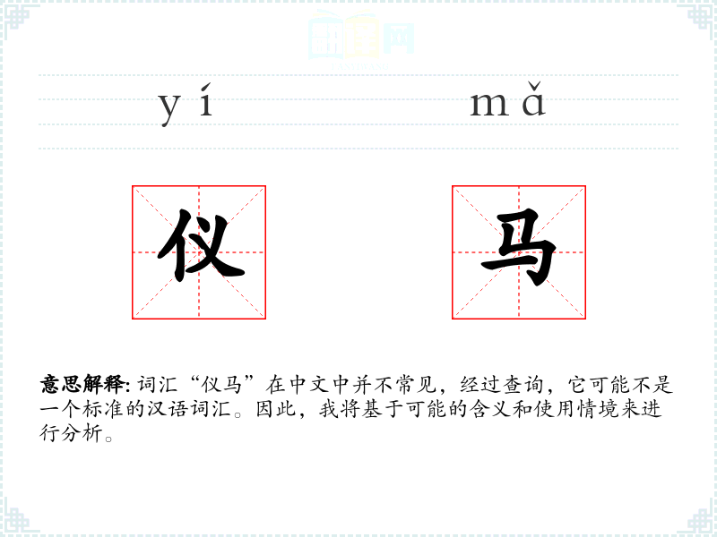 词汇“仪马”在中文中并不常见,经过查询,它可能不是一个标准的汉语词汇。因此,我将基于可能的含义和使用情境来进行分析。