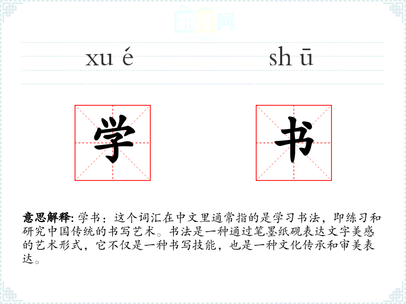 通过对“学书”这一词汇的深入学*,我更加理解了书法在*文化中的重要地位。它不仅是一种艺术形式,也是一种文化传承和精神追求。在个人语言学和表达中,了解和运用这样的词汇,能够丰富我的文化视野,提升我的语言表达的深度和广度。