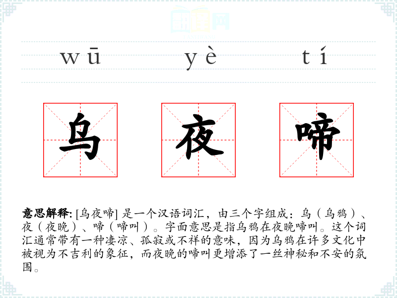 - 鸦夜啼:与乌夜啼意思相近,都指乌鸦在夜晚啼叫。