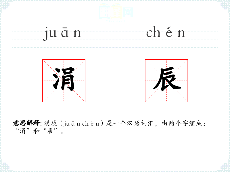 涓辰(juān chén)是一个汉语词汇,由两个字组成:“涓”和“辰”。