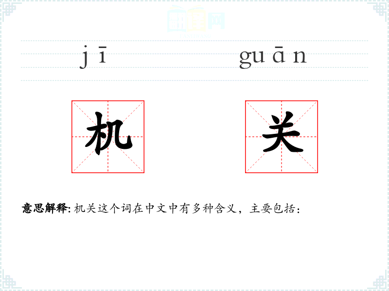 "机关"的意思解释、机关是什么意思由翻译网汉语词典查词提供。