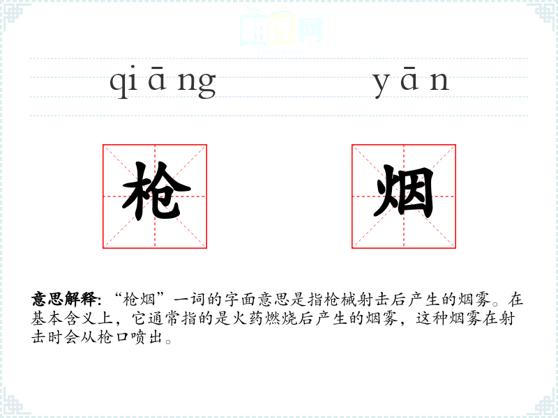 "枪烟"的意思解释、枪烟是什么意思由翻译网汉语词典查词提供。