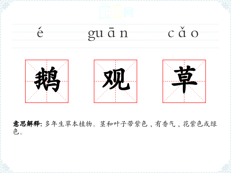 多年生草本植物。茎和叶子带紫色﹐有香气﹐花紫色或绿色。