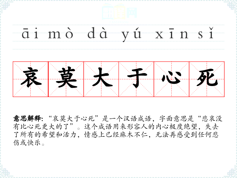 这些同义词和反义词在表达情感状态时各有细微差别,但都与“哀莫大于心死”在情感的深度和强度上有所关联。