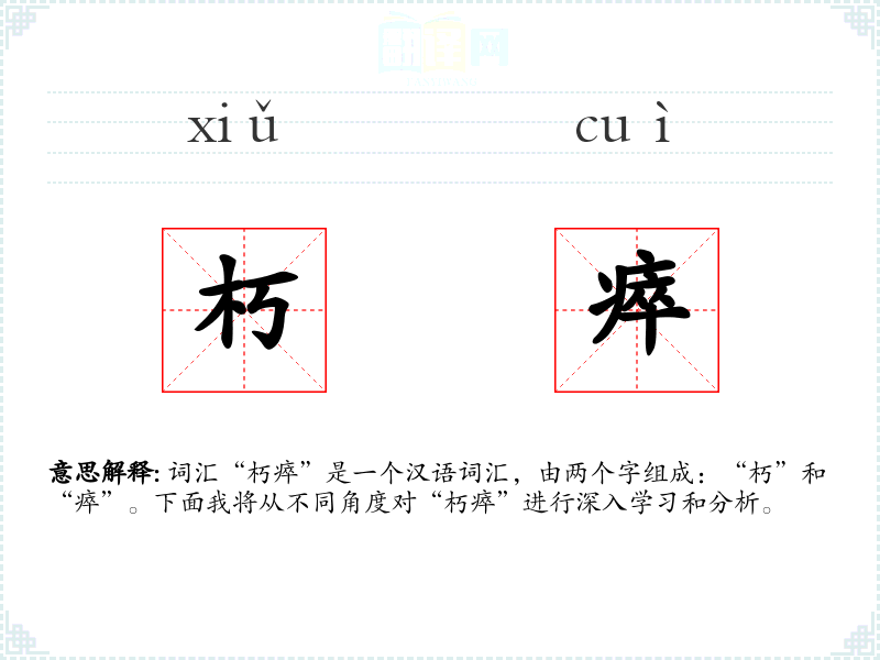 - 对应词汇:在英语中,“朽瘁”可以对应为“decayed”和“exhausted”,但作为一个复合词,英语中没有直接对应的词汇。