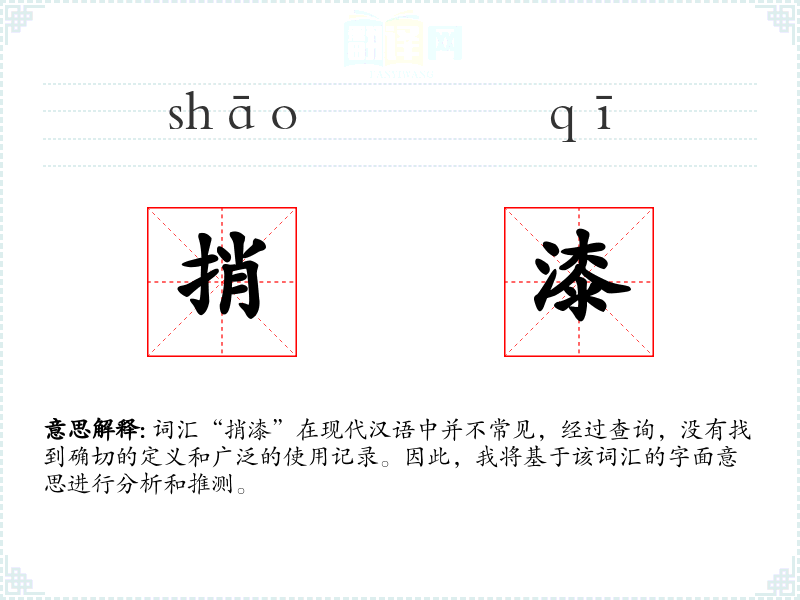 “捎漆”作为一个不常用的词汇,其字面意思和可能的使用场景相对有限。在学习语言时,了解和掌握常用词汇更为重要,但偶尔了解一些特定领域的专业词汇也能丰富语言知识。