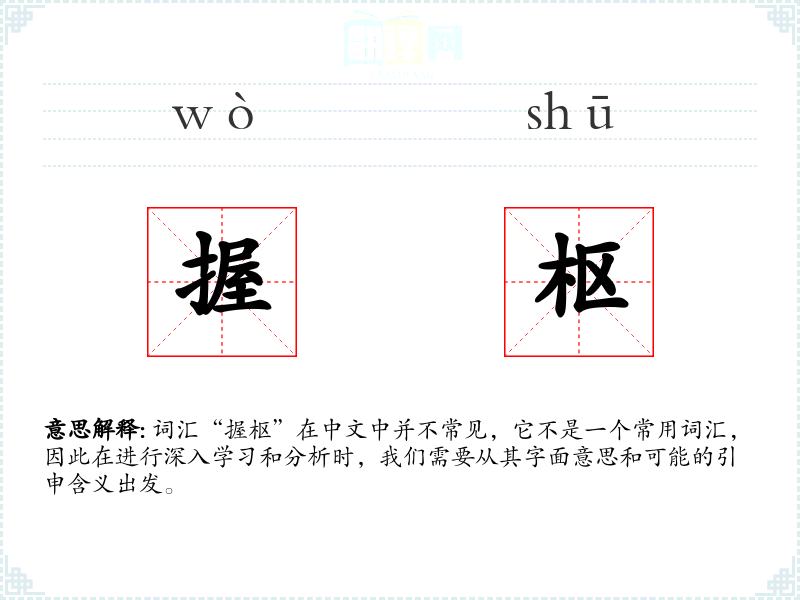 词汇“握枢”在中文中并不常见,它不是一个常用词汇,因此在进行深入学*和分析时,我们需要从其字面意思和可能的引申含义出发。