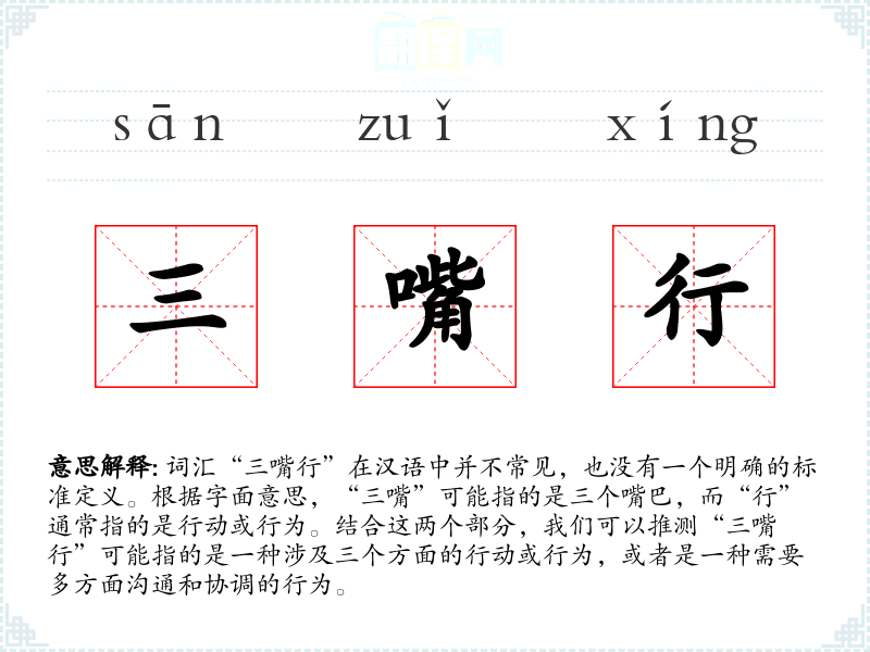 由于“三嘴行”不是一个标准词汇,其在不同语言或文化中的对应词汇不详。