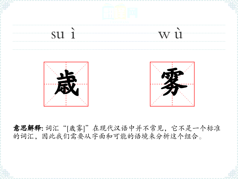 词汇“[歳雾]”在现代汉语中并不常见,它不是一个标准的词汇,因此我们需要从字面和可能的语境来分析这个组合。