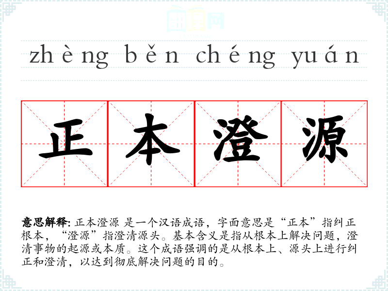 在英语中,正本澄源 可以对应于“get to the root of the problem”或“address the issue at its core”,这些表达也强调了从根本上解决问题的概念。