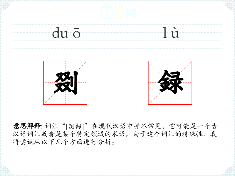 词汇“[剟録]”在现代汉语中并不常见,它可能是一个古汉语词汇或者是某个特定领域的术语。由于这个词汇的特殊性,我将尝试从以下几个方面进行分析: