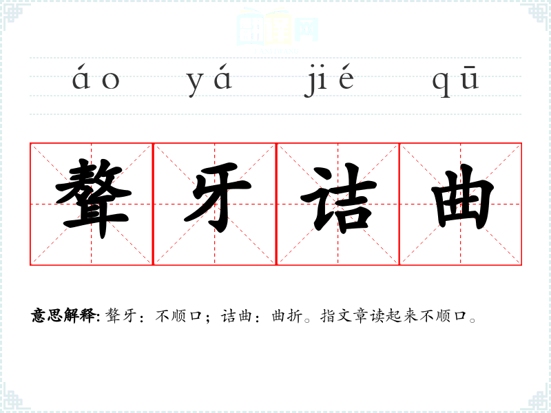 聱牙:不顺口;诘曲:曲折。指文章读起来不顺口。