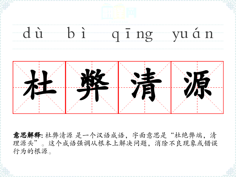 在文化中,杜弊清源** 体现了儒家思想中的“治国平天下”理念,即通过彻底的改革和治理,达到社会和谐与进步。在现代社会,这个成语常被用来强调政策或措施的彻底性和有效性。