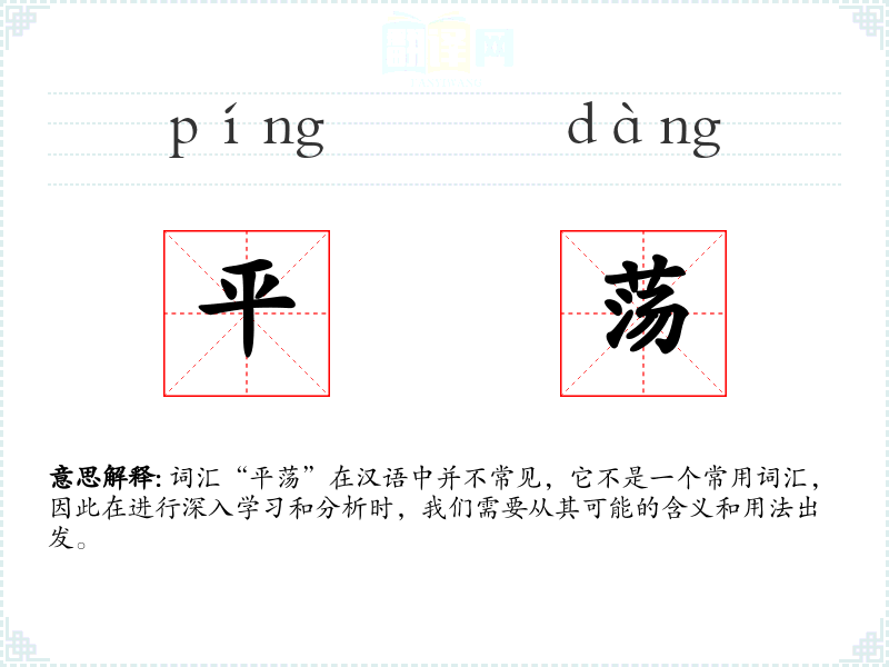词汇“平荡”在汉语中并不常见,它不是一个常用词汇,因此在进行深入学*和分析时,我们需要从其可能的含义和用法出发。