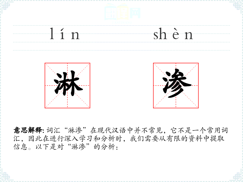 词汇“淋渗”在现代汉语中并不常见,它不是一个常用词汇,因此在进行深入学习和分析时,我们需要从有限的资料中提取信息。以下是对“淋渗”的分析: