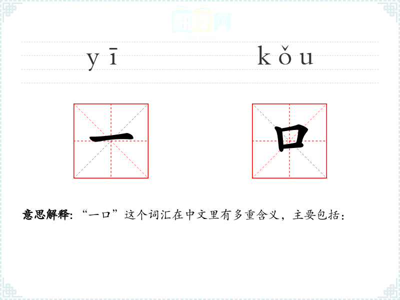 "一口"的意思解释、一口是什么意思由翻译网汉语词典查词提供。