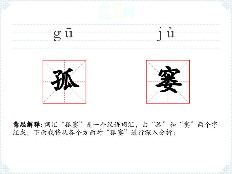 - 词源:“孤窭”一词在古代汉语中已有使用,源自对贫困和孤独状态的描述。