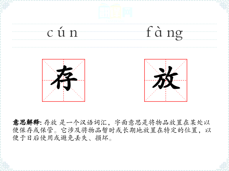 "存放"的意思解释、存放是什么意思由翻译网汉语词典查词提供。