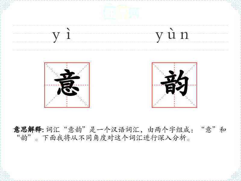 - 专业领域:在艺术评论或文学评论中,“意韵”是一个常用术语,用来分析作品的艺术价值。
