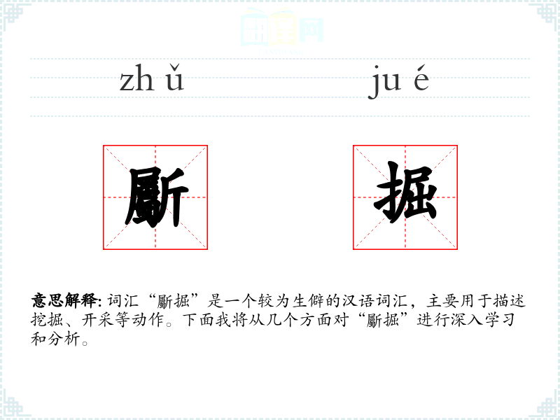 词汇“斸掘”是一个较为生僻的汉语词汇,主要用于描述挖掘、开采等动作。下面我将从几个方面对“斸掘”进行深入学*和分析。