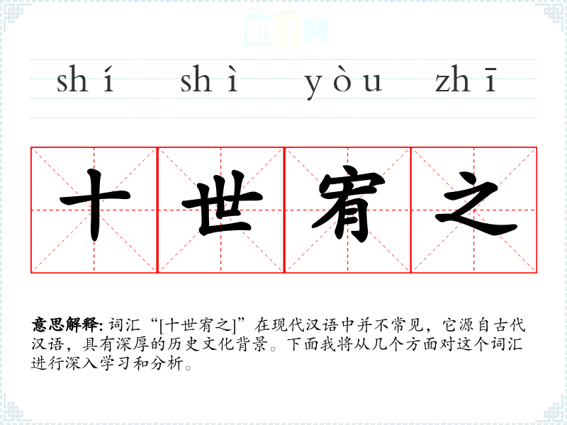 词汇“[十世宥之]”在现代汉语中并不常见,它源自古代汉语,具有深厚的历史文化背景。下面我将从几个方面对这个词汇进行深入学*和分析。