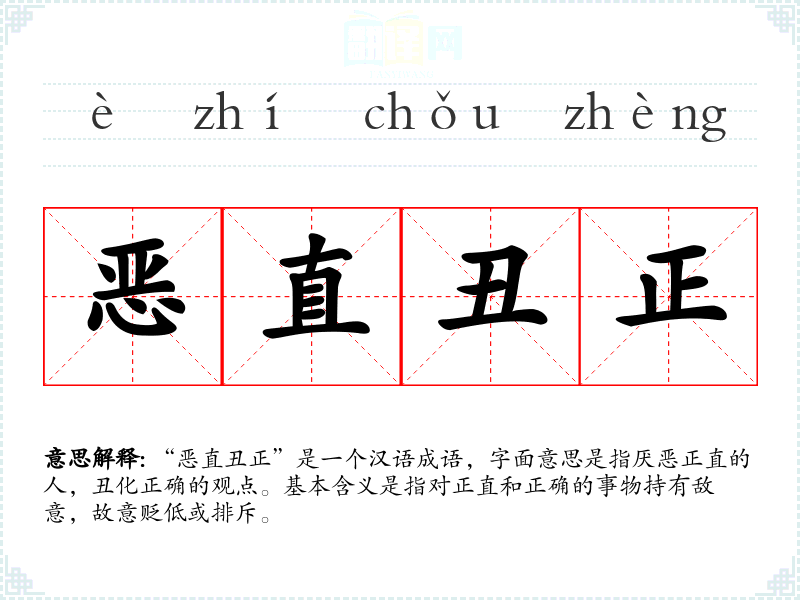 “恶直丑正”是一个汉语成语,字面意思是指厌恶正直的人,丑化正确的观点。基本含义是指对正直和正确的事物持有敌意,故意贬低或排斥。