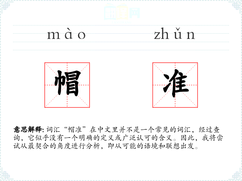 "帽准"的意思解释、帽准是什么意思由翻译网汉语词典查词提供。