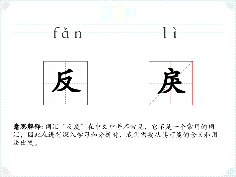 词汇“反戾”在中文中并不常见,它不是一个常用的词汇,因此在进行深入学习和分析时,我们需要从其可能的含义和用法出发。