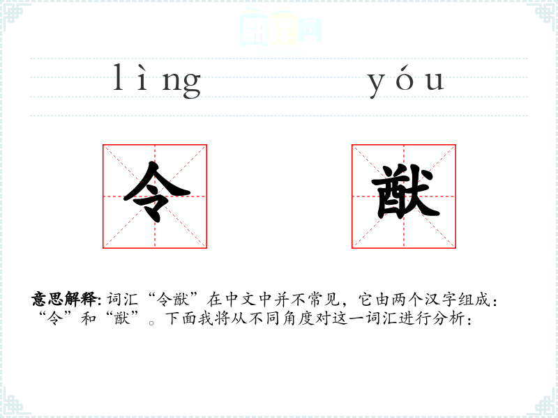 - “令”通常有命令、使、美好的含义。