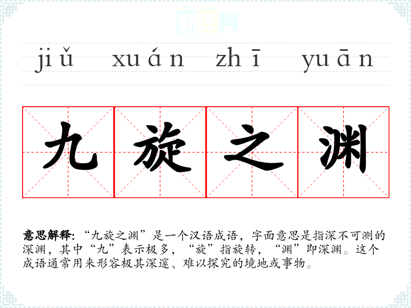 “九旋之渊”这个成语的词源较为模糊,可能是古代文人根据自然现象创造的比喻性表达。随着时间的推移,这个成语的使用范围逐渐扩大,但其核心意义——深邃、难以探究——保持不变。