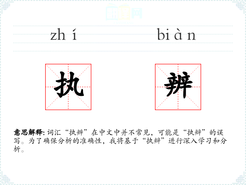 词汇“执辨”在中文中并不常见,可能是“执辩”的误写。为了确保分析的准确性,我将基于“执辩”进行深入学*和分析。