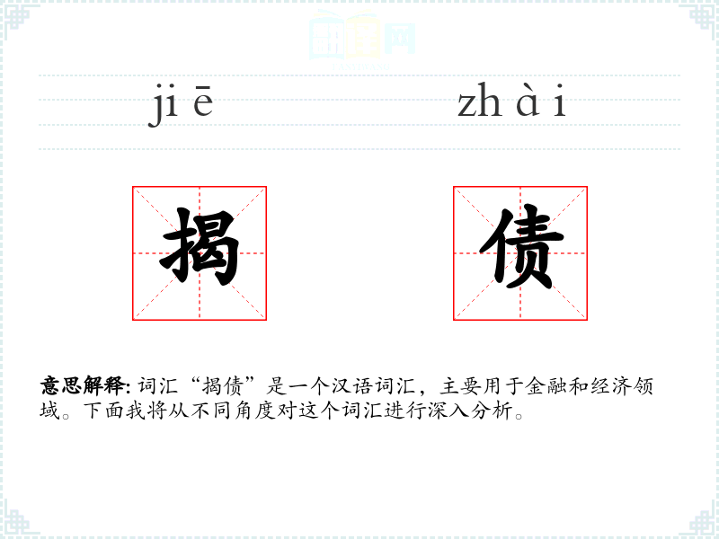 词汇“揭债”是一个汉语词汇,主要用于金融和经济领域。下面我将从不同角度对这个词汇进行深入分析。