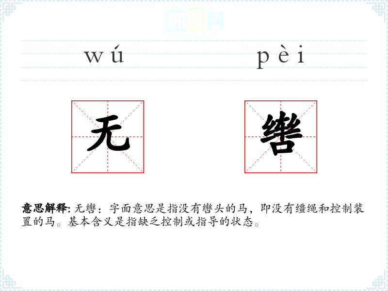 无辔:字面意思是指没有辔头的马,即没有缰绳和控制装置的马。基本含义是指缺乏控制或指导的状态。