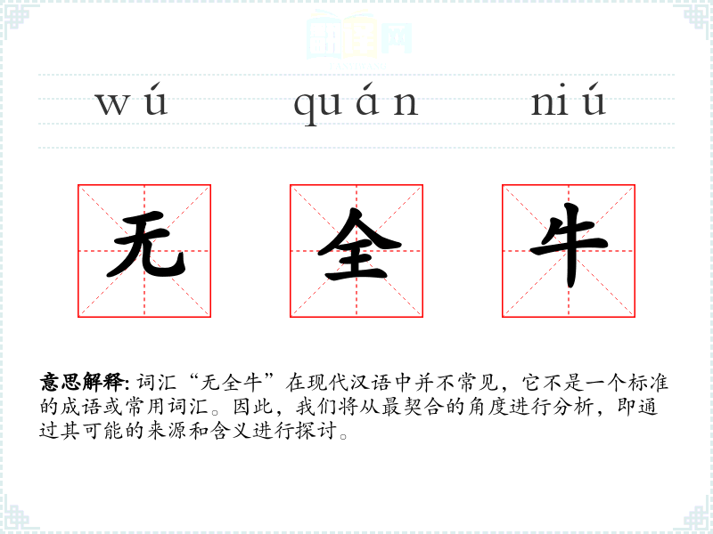 词汇“无全牛”在现代汉语中并不常见,它不是一个标准的成语或常用词汇。因此,我们将从最契合的角度进行分析,即通过其可能的来源和含义进行探讨。