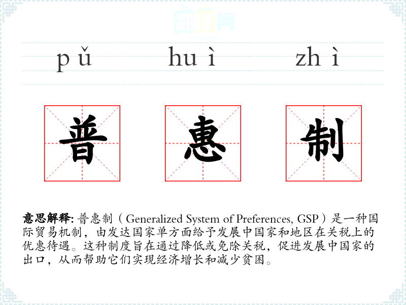 普惠制(Generalized System of Preferences, GSP)是一种国际贸易机制,由发达国家单方面给予发展家和地区在关税上的优惠待遇。这种制度旨在通过降低或免除关税,促进发展家的出口,从而帮助它们实现经济增长和减少贫困。