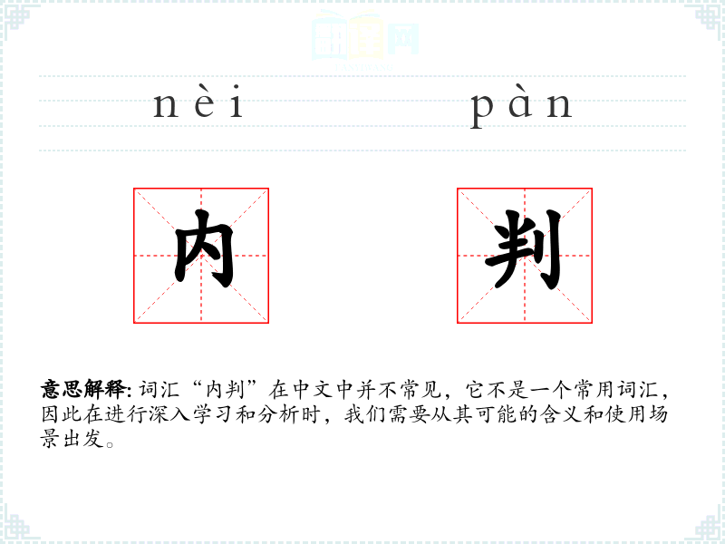 词汇“内判”在中文中并不常见,它不是一个常用词汇,因此在进行深入学*和分析时,我们需要从其可能的含义和使用场景出发。