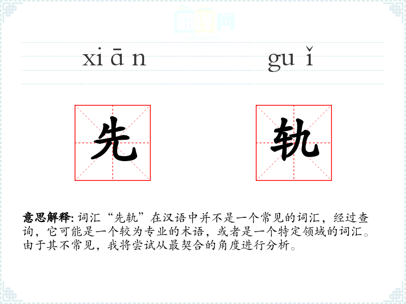 词汇“先轨”在汉语中并不是一个常见的词汇,经过查询,它可能是一个较为专业的术语,或者是一个特定领域的词汇。由于其不常见,我将尝试从最契合的角度进行分析。