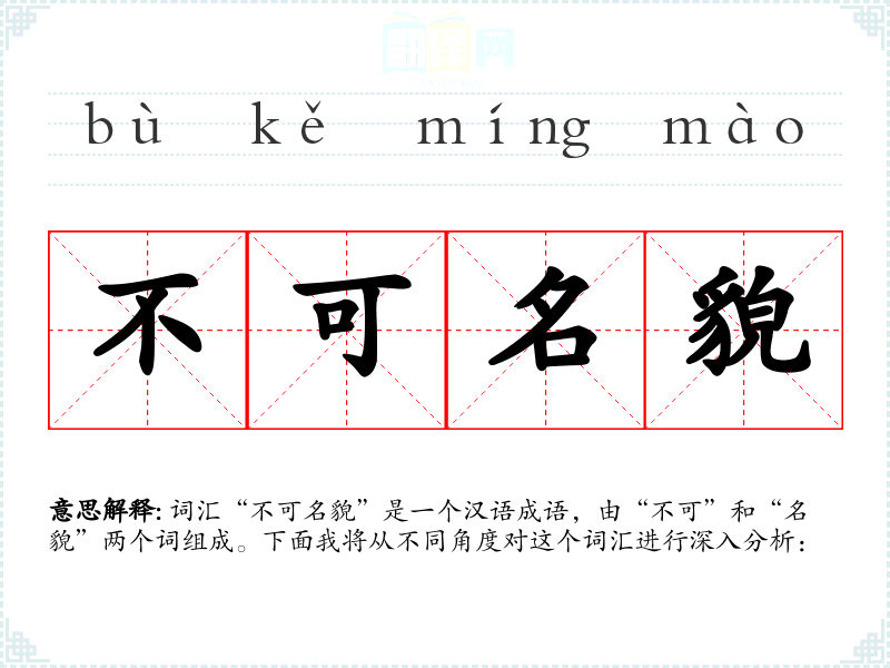 词汇“不可名貌”是一个汉语成语,由“不可”和“名貌”两个词组成。下面我将从不同角度对这个词汇进行深入分析: