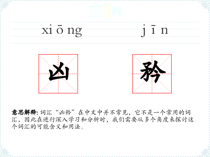 词汇“凶矜”在中文中并不常见,它不是一个常用的词汇,因此在进行深入学习和分析时,我们需要从多个角度来探讨这个词汇的可能含义和用法。