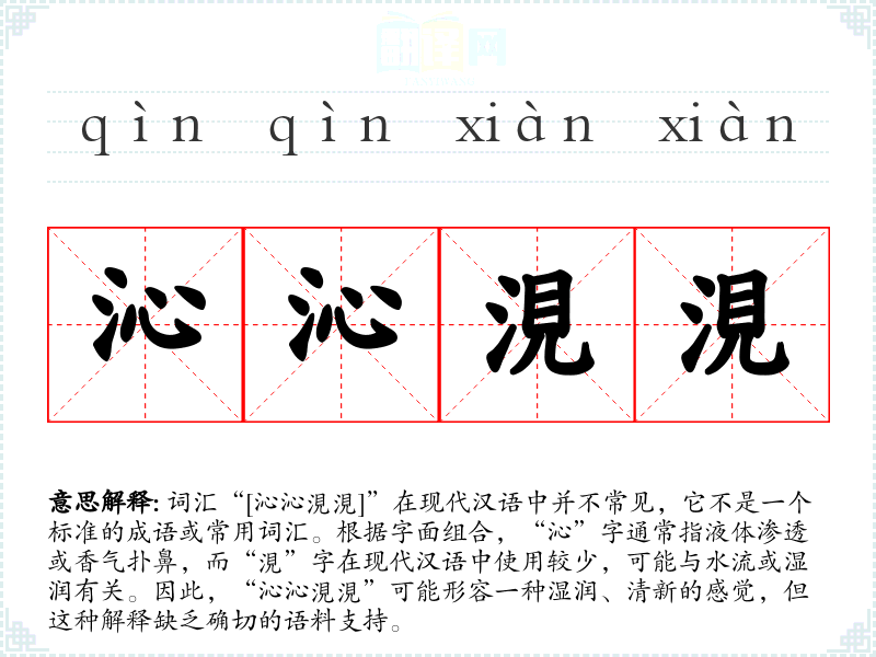 由于“沁沁涀涀”不是一个标准词汇,其字面意思和基本含义难以确定。可能的解释是形容某种液体渗透或环境湿润、清新的状态。