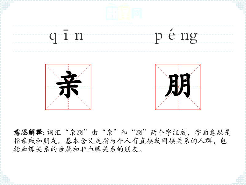 - 同义词:亲友、亲故、亲眷