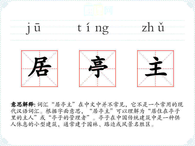 - 字面意思:居住在亭子里的人或亭子的主人。