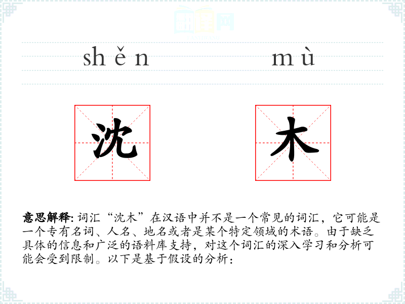 - 如果“沈木”是一个人名或地名,它可能与特定的文化或社会背景相关联。