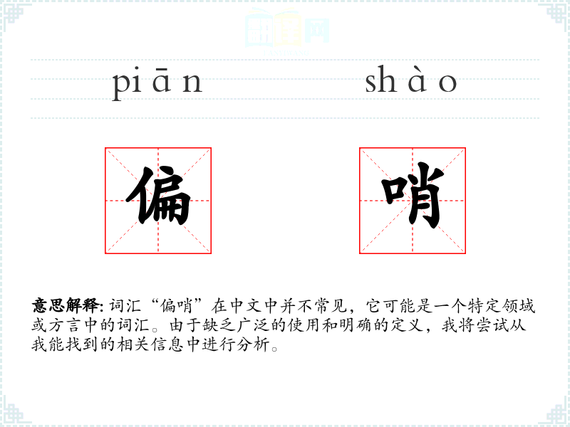 词汇“偏哨”在中文中并不常见,它可能是一个特定领域或方言中的词汇。由于缺乏广泛的使用和明确的定义,我将尝试从我能找到的相关信息中进行分析。