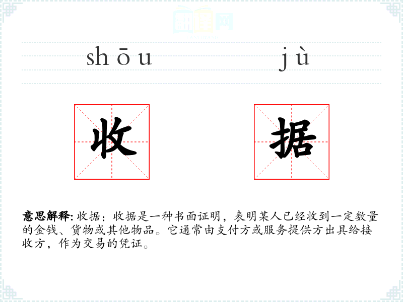 "收据"的意思解释、收据是什么意思由翻译网汉语词典查词提供。