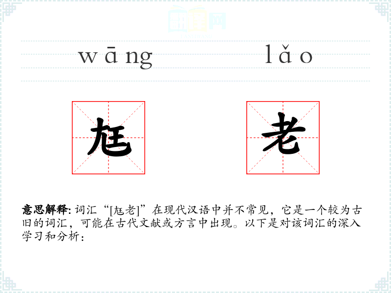 词汇“[尪老]”在现代汉语中并不常见,它是一个较为古旧的词汇,可能在古代文献或方言中出现。以下是对该词汇的深入学*和分析: