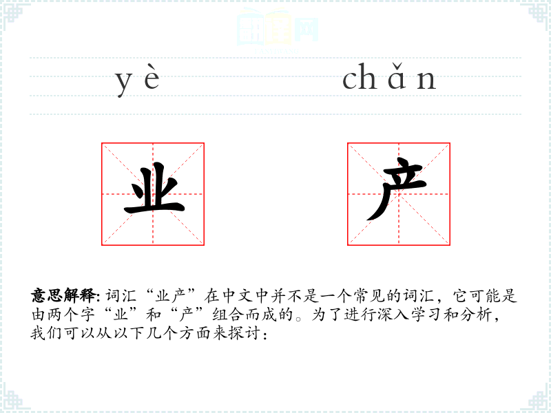 词汇“业产”在中文中并不是一个常见的词汇,它可能是由两个字“业”和“产”组合而成的。为了进行深入学*和分析,我们可以从以下几个方面来探讨: