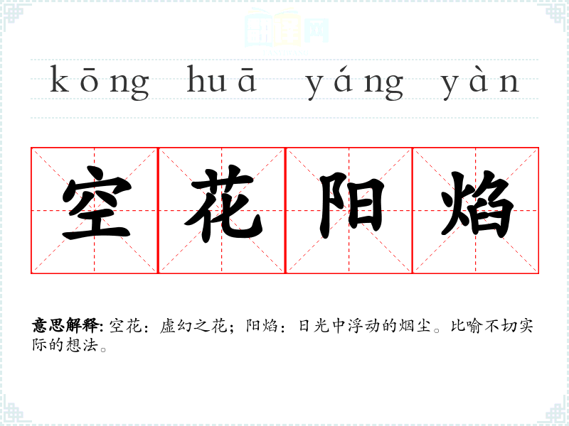 空花:虚幻之花;阳焰:日光中浮动的烟尘。比喻